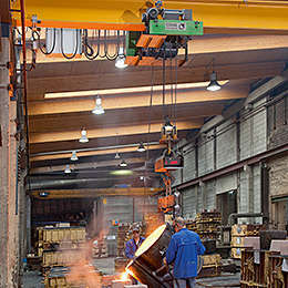 Ekstremalne temperatury, wysokie zapylenie, restrykcyjne przepisy bezpieczeństwa: wyspecjalizowana technologia dźwigowa i duże doświadczenie STAHL CraneSystems są cenione w przemyśle odlewniczym i betonowym.